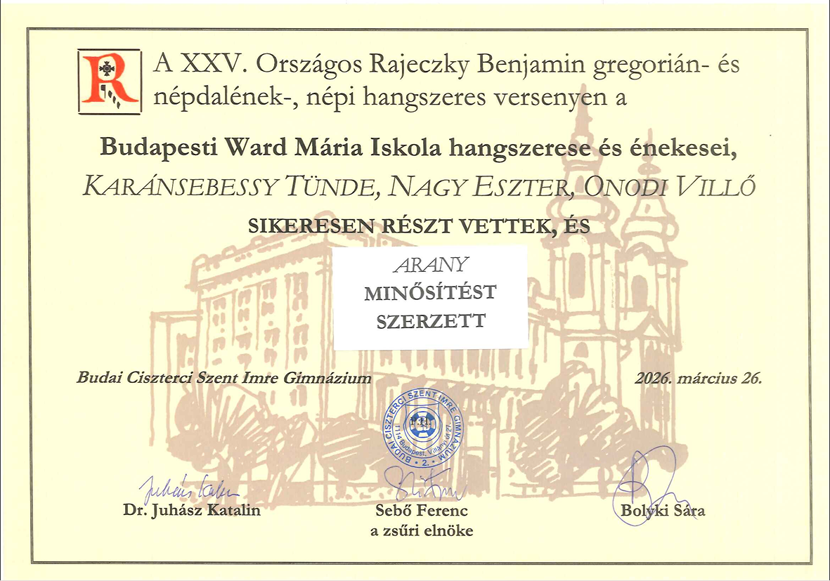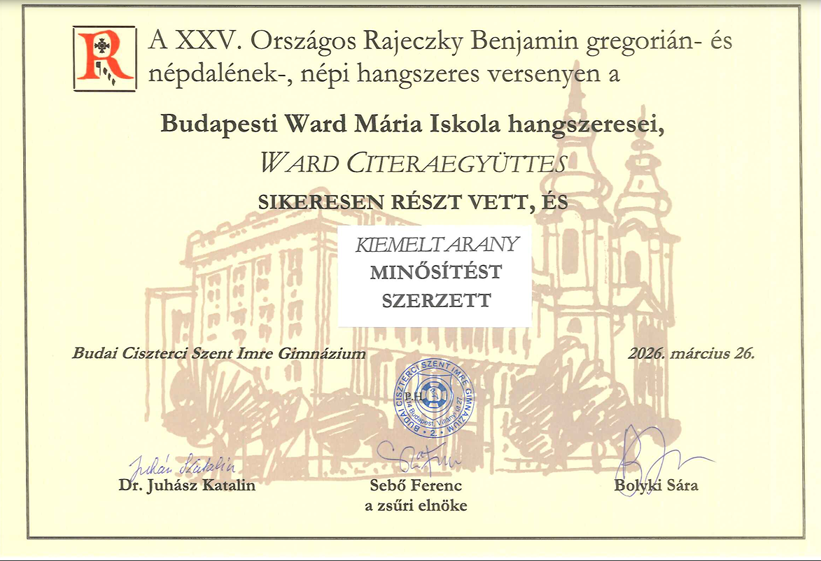 - Ward Citerazenekar (Biró-Bacsó Gerda, Szabó Petra, Karánsebessy Tünde, Nagy Eszter) KIEMELT ARANY minősítés, felkészítőjük Koósné Légrády Eszter