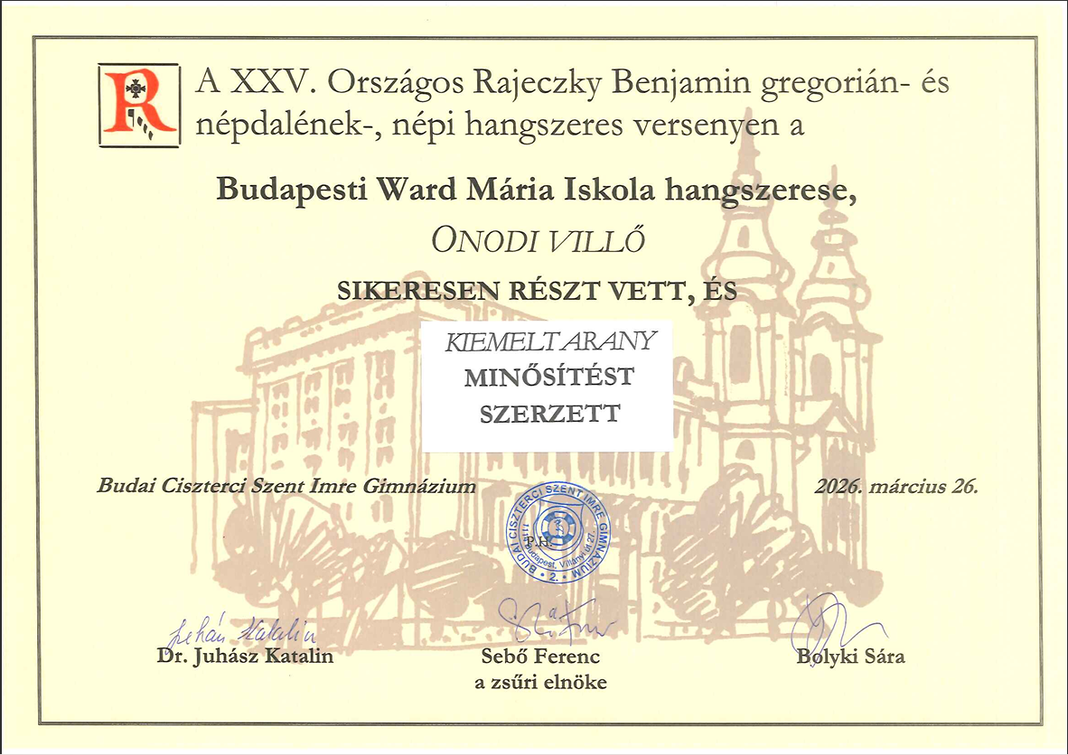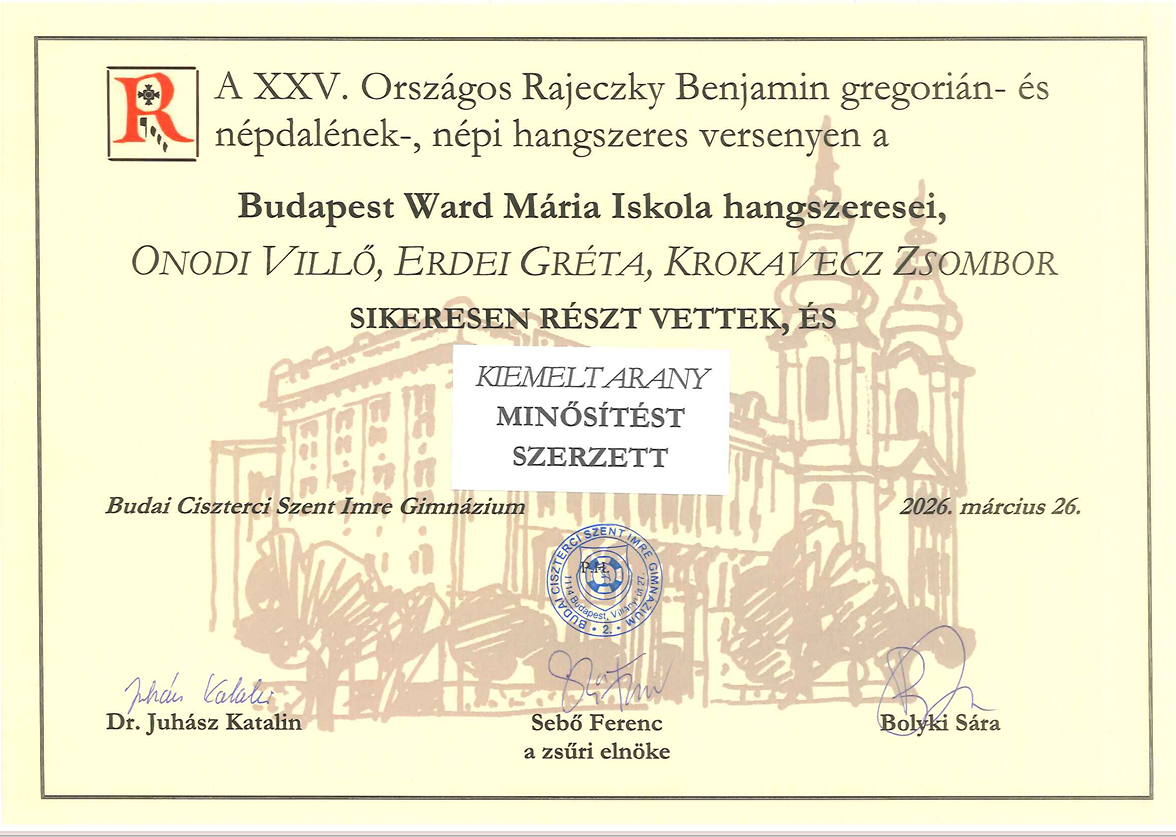 - Onodi Villő 11z (hegedű) - Erdei Gréta 11z (brácsa) - Krokavecz Zsombor 11z (gardon): KIEMELT ARANY minősítés, felkészítőjük Horváth Attila